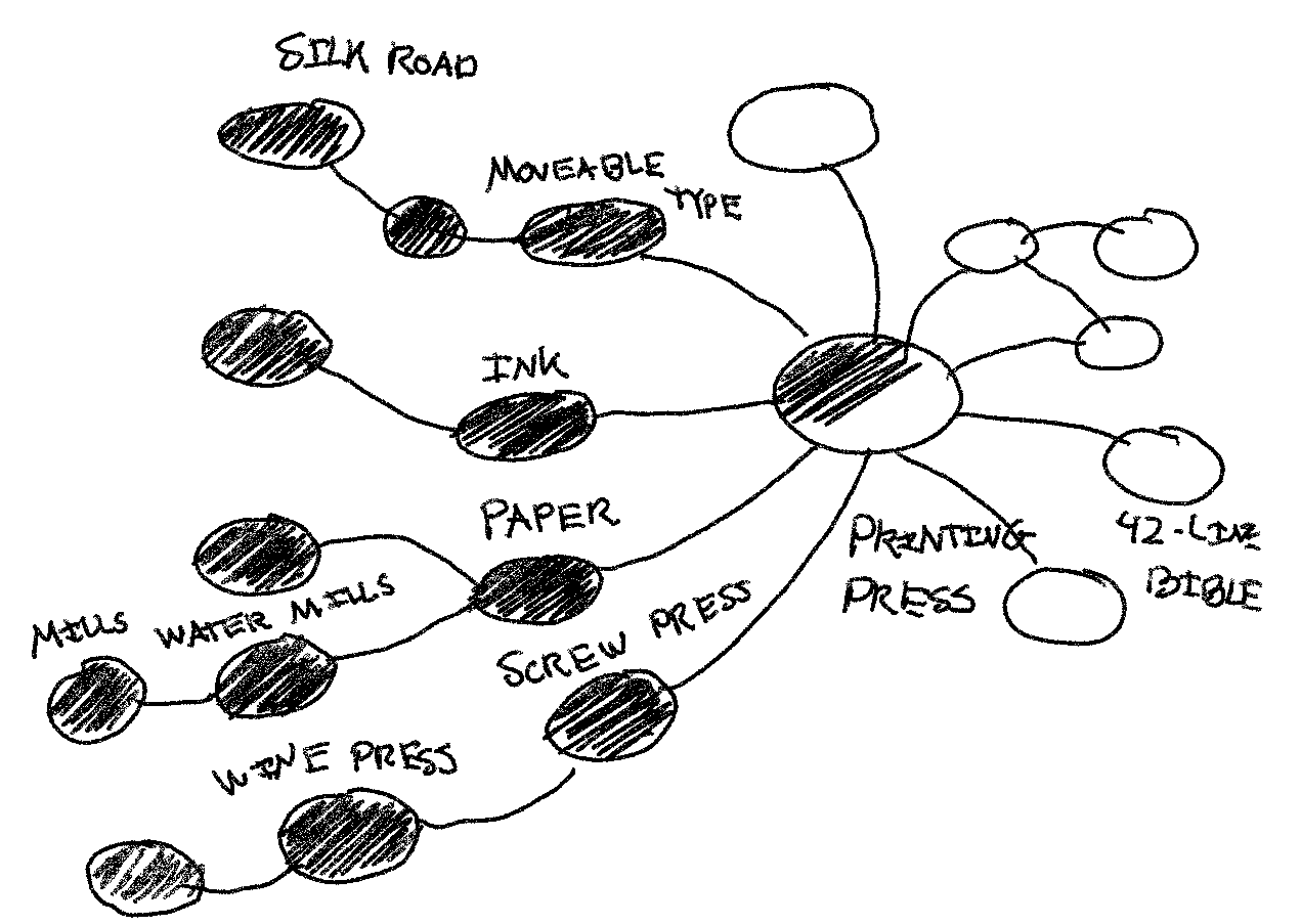 Kauffman shows how we can extend the same logic to human innovation. The printing press was a combination of a wine press, paper, ink, and moveable. This combination created new possibilities for books, newspapers, and information sharing. But it also foreclosed old ones. Scribesmanship faded to obsolescence, and we will never know what new combinations may have come had we followed that branch of the tree.